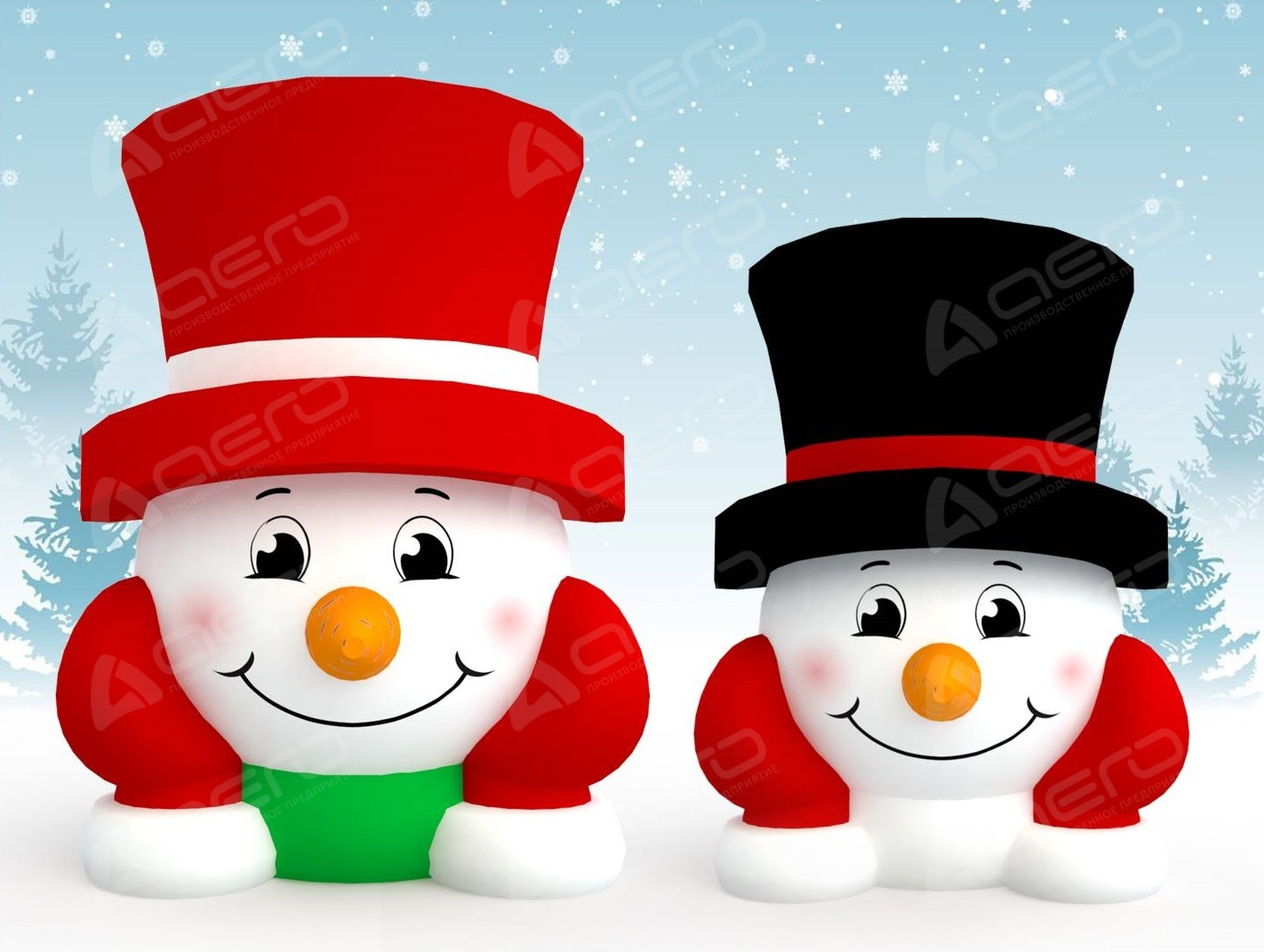 Пневмоконструкция "Снеговик в цилиндре" выполнена из заводских оттенков, но может быть выполнена с полноцветной печатью или размещением вашего логотипа на цилиндре, что сделает фигуру отличным рекламным носителем (оплачивается дополнительно).