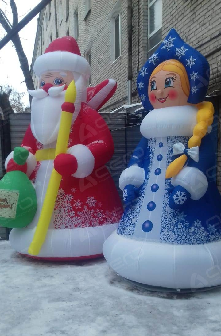 В комплекте с надувной Снегуркой отлично сочетается Дед Мороз бОльшего размера (например Дед Мороз 4 метра, а Снегурочка 3 метра). Высоту Снеговика (или любого другого новогоднего персонажа) можно подобрать на ваш выбор.