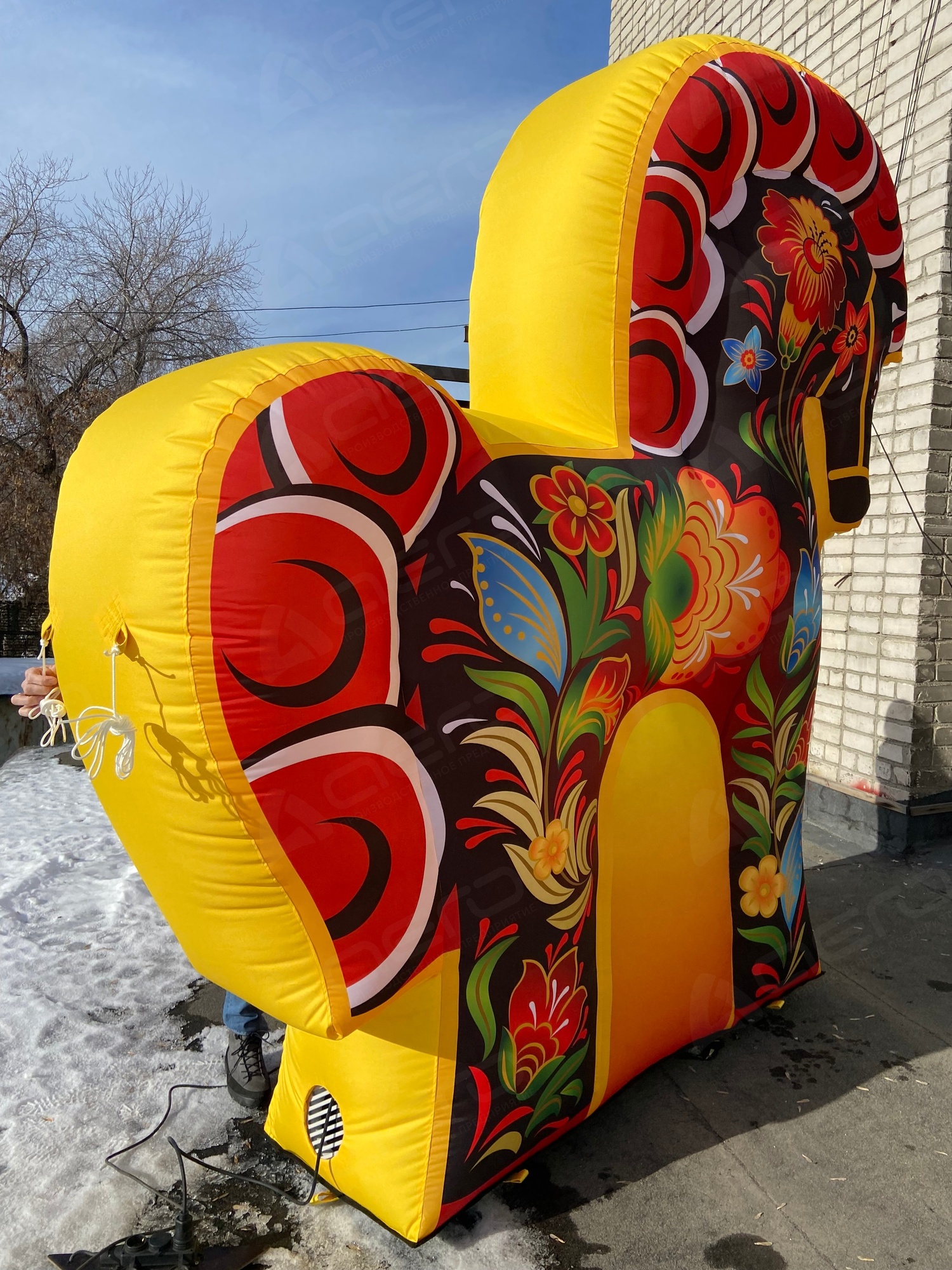 Фигура, которая завоевала сердца многих и стала неотъемлемой частью Масленичных гуляний - это надувная Лошадка! Важно отметить, что эта фигура обладает уникальной особенностью - возможностью двустороннего оформления: желая создать разные настроения и стили, можно создать сразу два неповторимых дизайна для надувной Лошадки и получить не одну, а сразу две яркие декорации и ещё больше восторженных реакций!