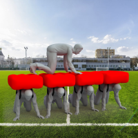 - Четыре участника надевают надувные плоты и выстраиваются в цепочку на четвереньках.