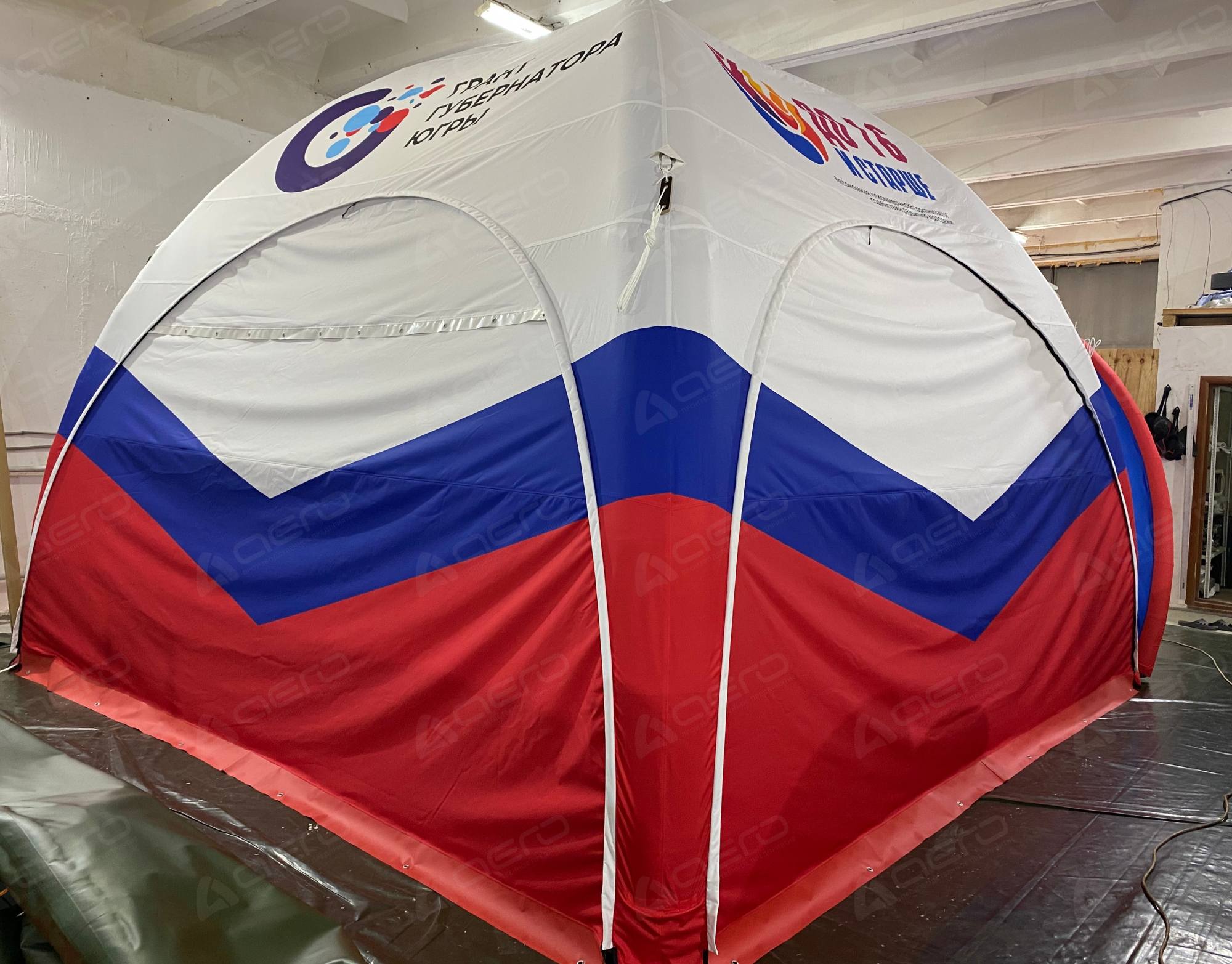 Закажите надувной шатер «Триколор» уже сегодня! Свяжитесь с нами, чтобы подобрать размер, комплектацию и согласовать макет вашего будущего шатра.