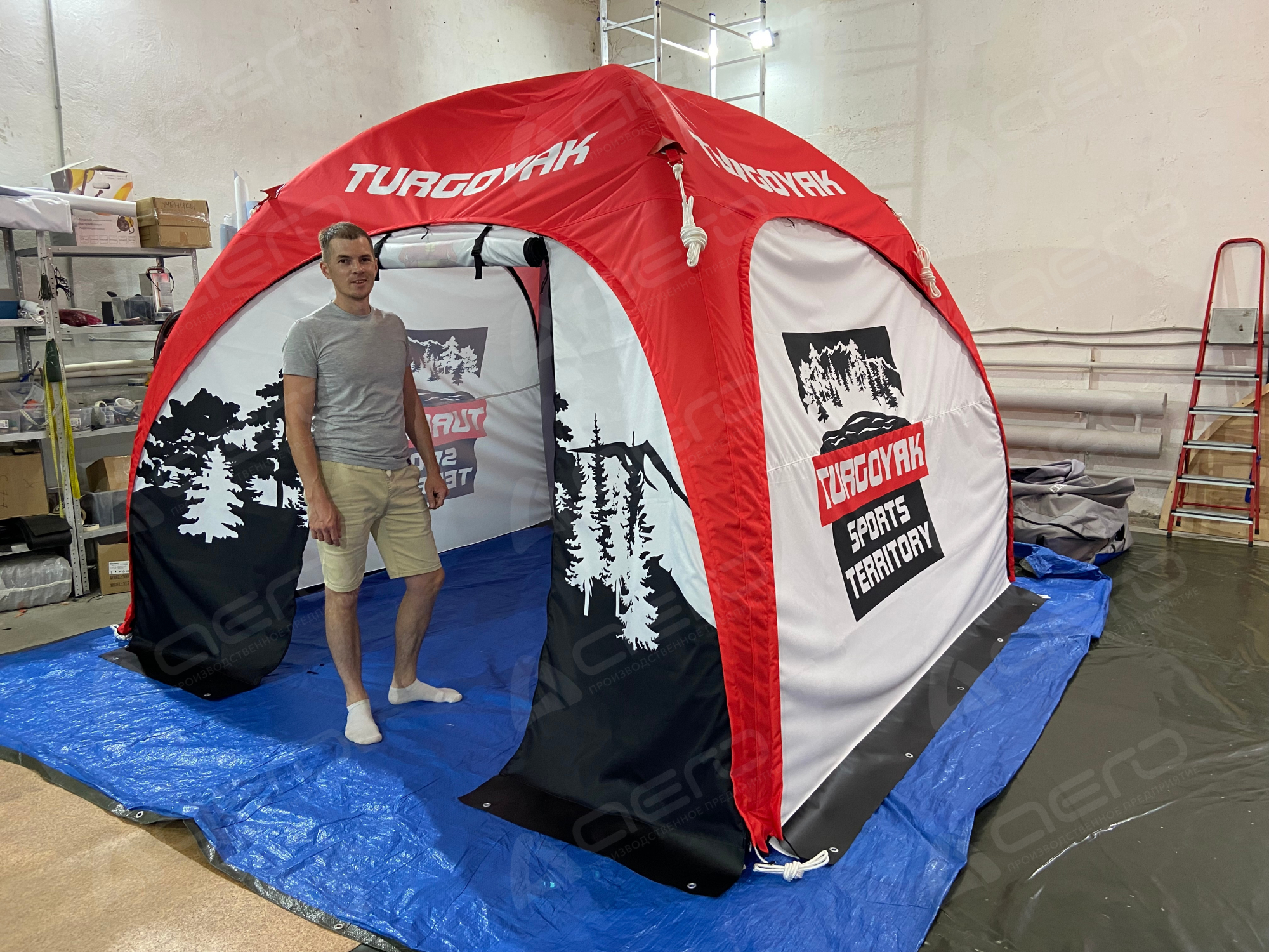 - Пневмокаркас + тент (основа шатра)