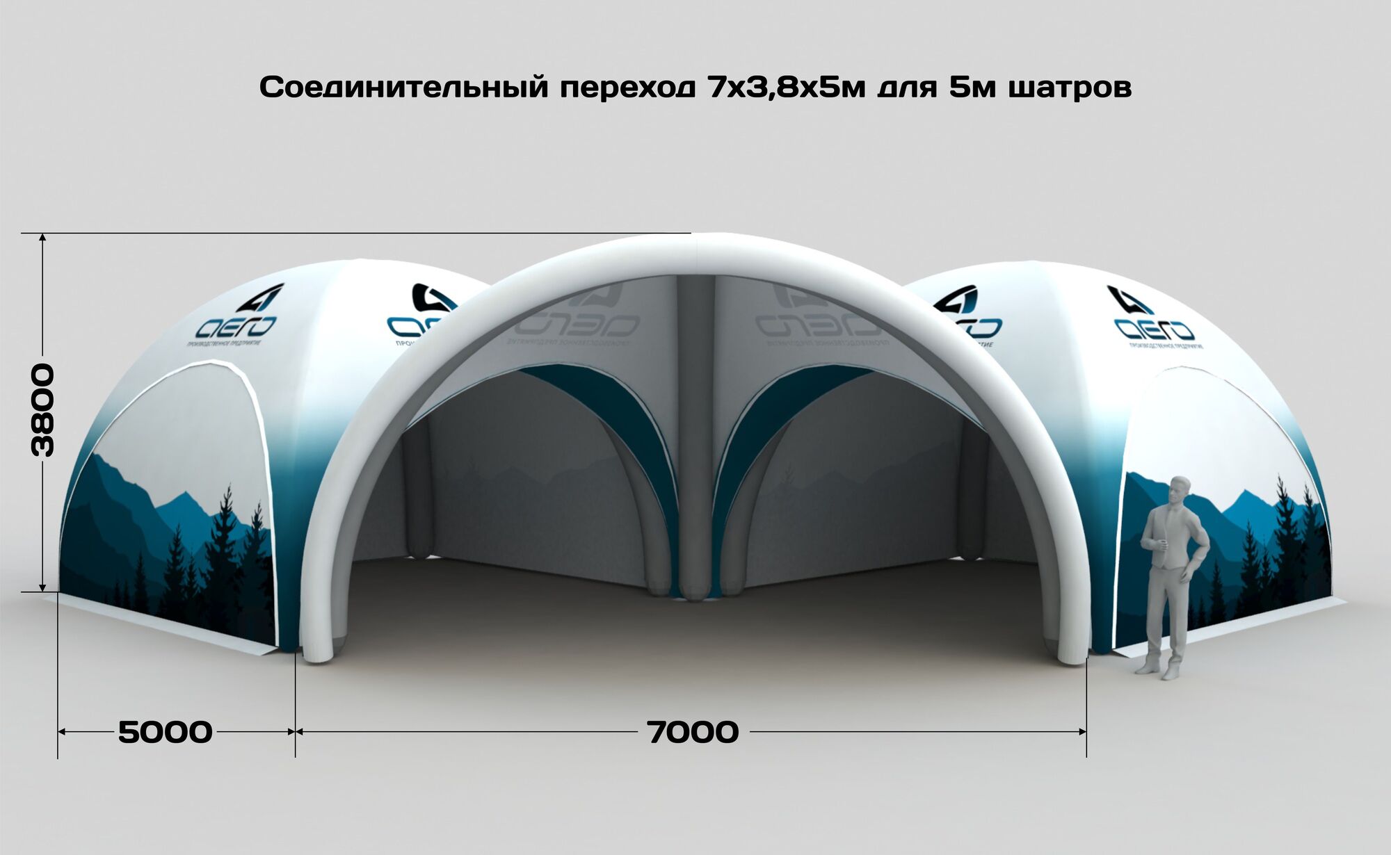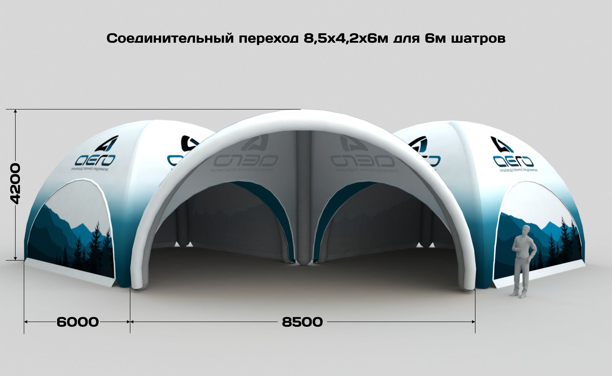 Возможности комбинирования шатров практически безграничны, что позволяет адаптировать пространство под любые потребности и сценарии. С помощью надувного перехода вы сможете разделять вашу площадку на секции, например, зона для угощений и место для деловых встреч.