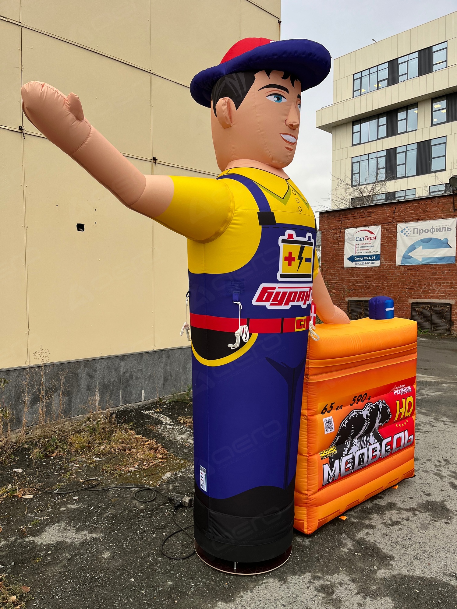 Съёмный баннер поможет создать вам универсальный образ Зазывалы! Если у вас кафе и автомойка, вы можете перемещать фигуру с одного места на другое, чтобы отследить трафик, заменив лишь баннер на "теле" фигуры. Также съёмный баннер будет актуален на время проведения акции.