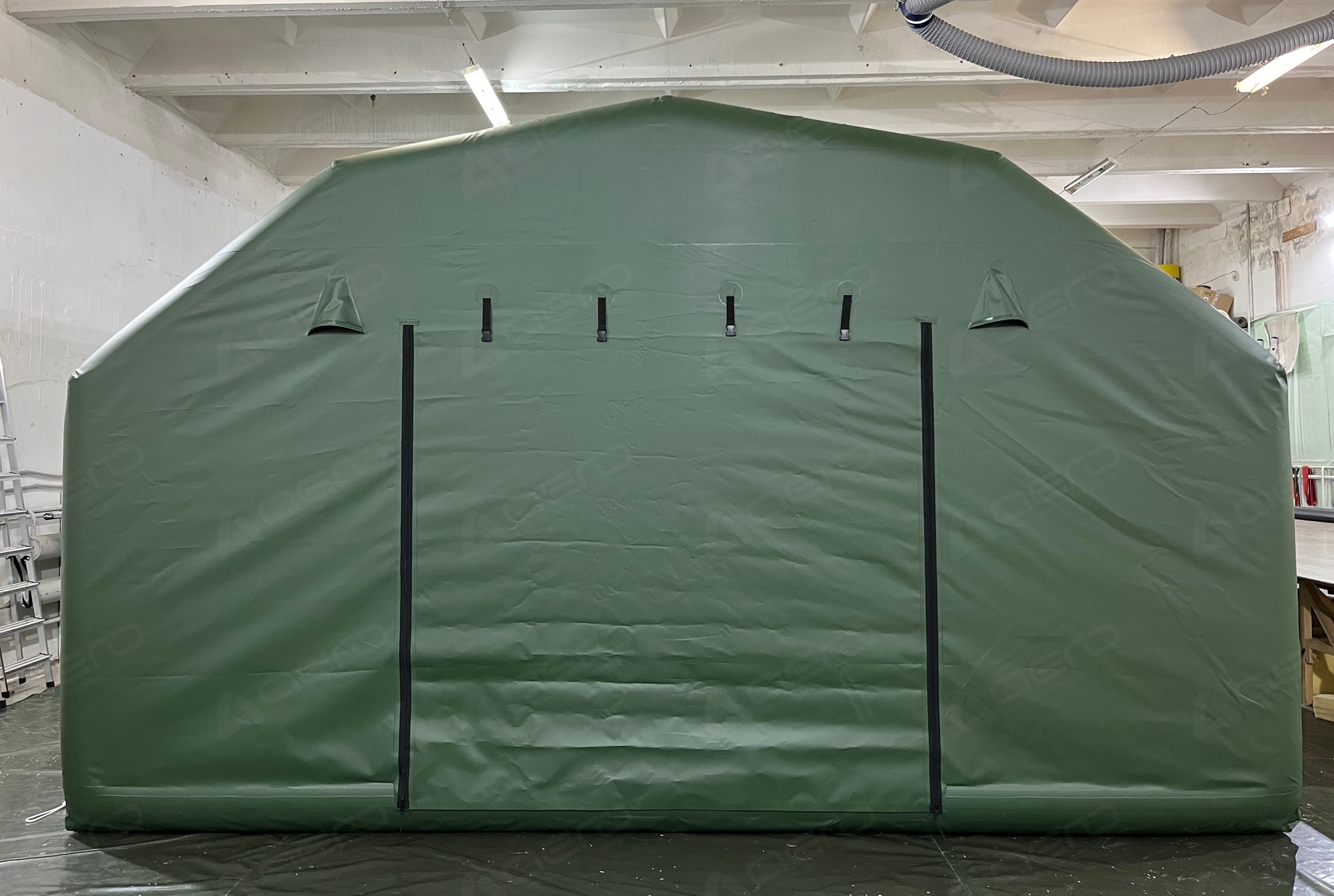 | Герметичная пневмодверь 1,8м.х0,8м. | Имеет надувной каркас и отдельный клапан для надува. Внутренняя и внешняя сторона двери выполнены из материала внешнего тента. Фиксируется в открытом положении, а также в закрытом при помощи застёжки фастекс. |