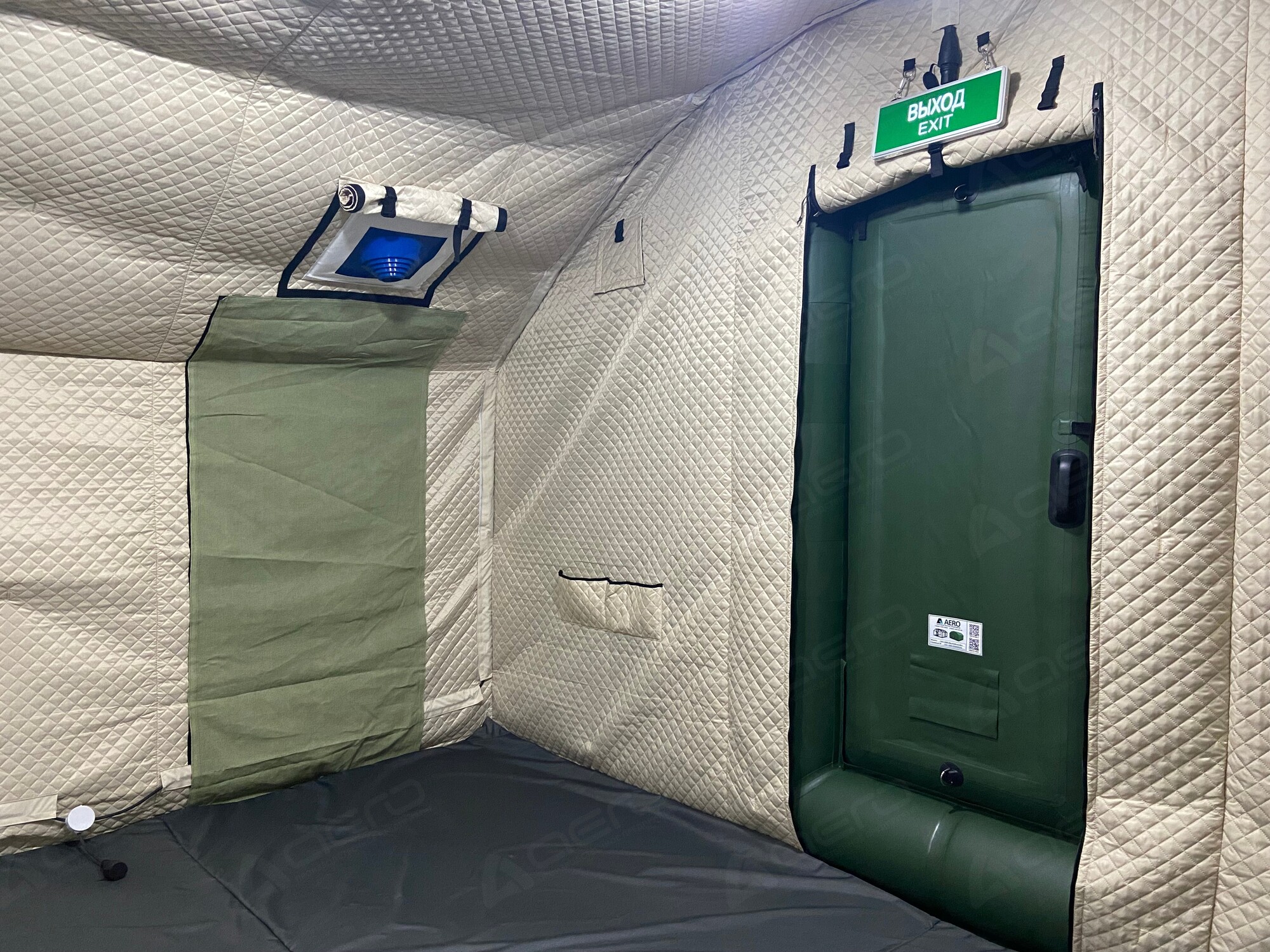 | Герметичная пневмодверь 1,8м.х0,8м. | Имеет надувной каркас и отдельный клапан для надува. Внутренняя и внешняя сторона двери выполнены из материала внешнего тента. Фиксируется в открытом положении, а также в закрытом при помощи застёжки фастекс. |