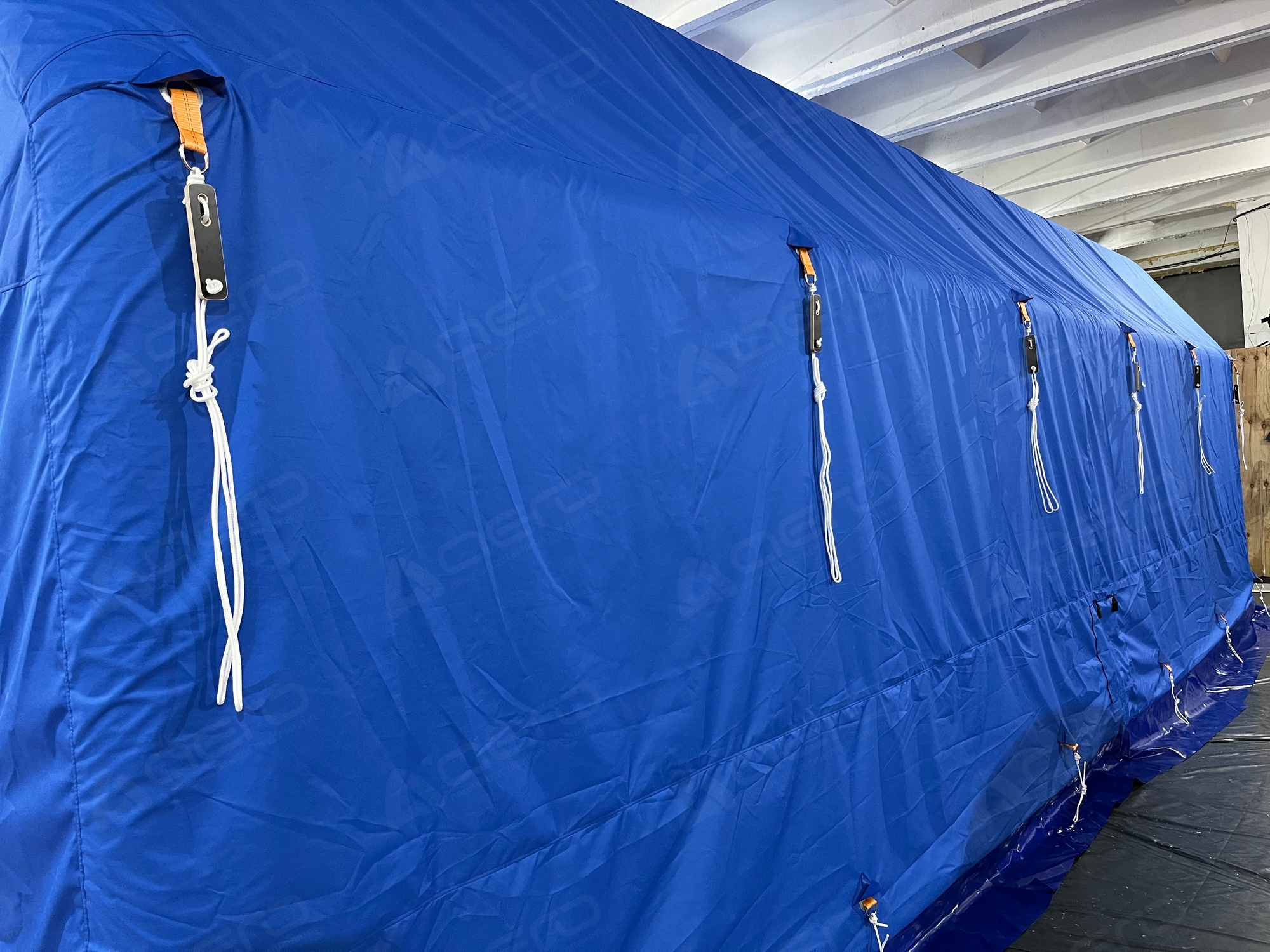 Оперативный монтаж – устанавливается в течение 10-15 минут без привлечения специального оборудования, надёжная изоляция от осадков, порывов ветра (до 25 м/с) и загрязнений, эксплуатация в широком диапазоне температур (от –50°C до +60°C) и продолжительный срок службы – рассчитаны на более чем 10 лет использования - ключевые достоинства пневмокаркасного укрытия.