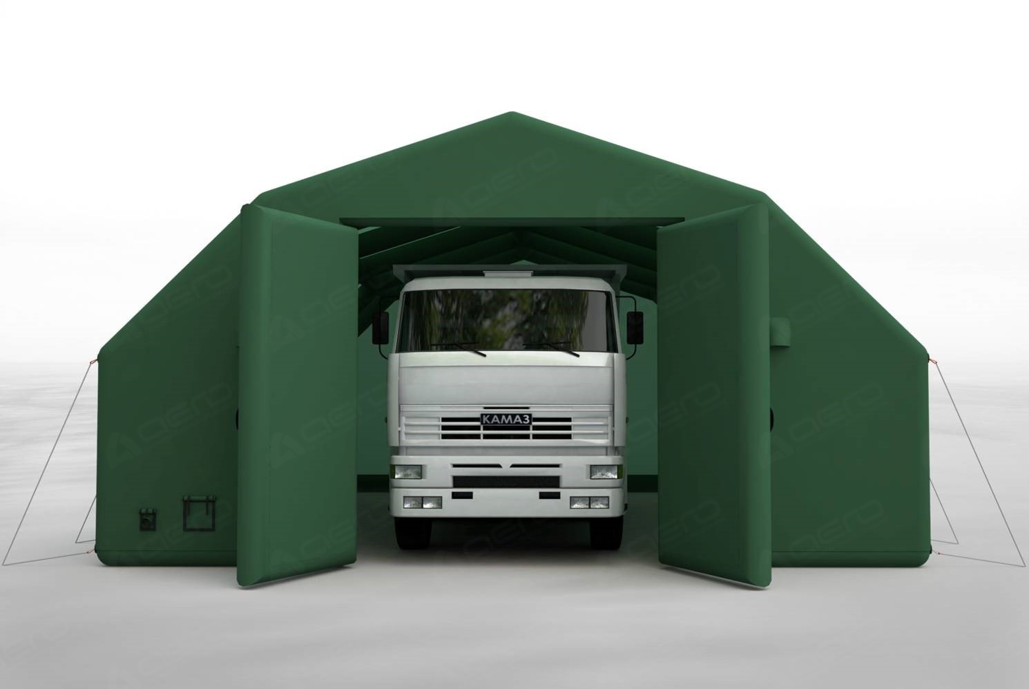 Пневмокаркасные укрытия преимущественно применяются для ремонта спецтехники в полевых условиях, на открытых площадках (при отсутствии гаражей, ангаров), а доставка неисправной техники в тёплый гараж невозможна.