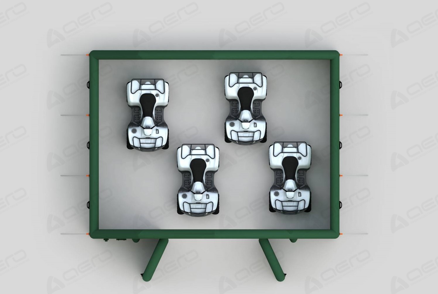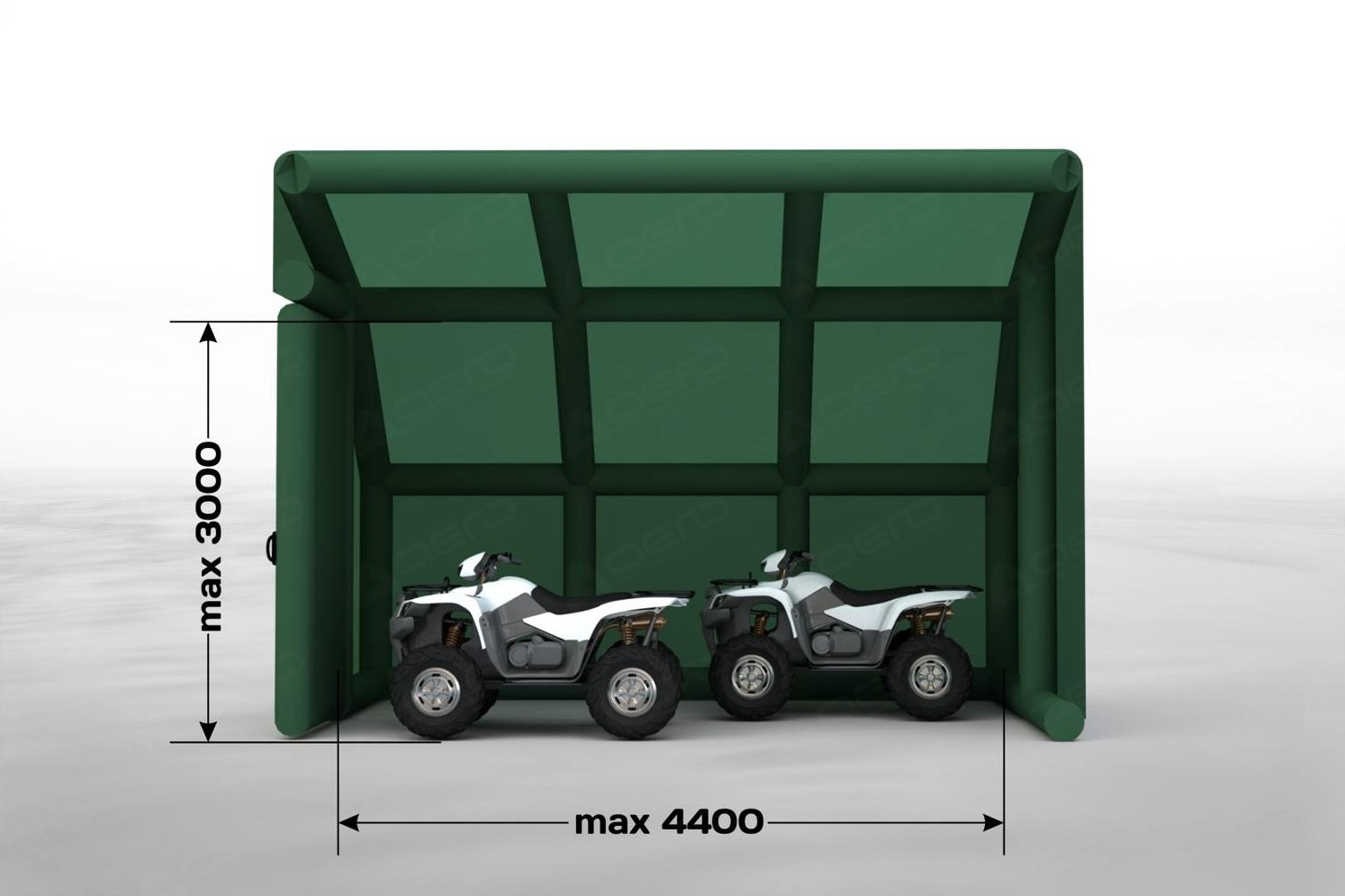 С каждой стороны имеется крепёж для растяжек к грунту для большей устойчивости на ветреной местности, а также ручки для переноса укрытия в надутом виде.