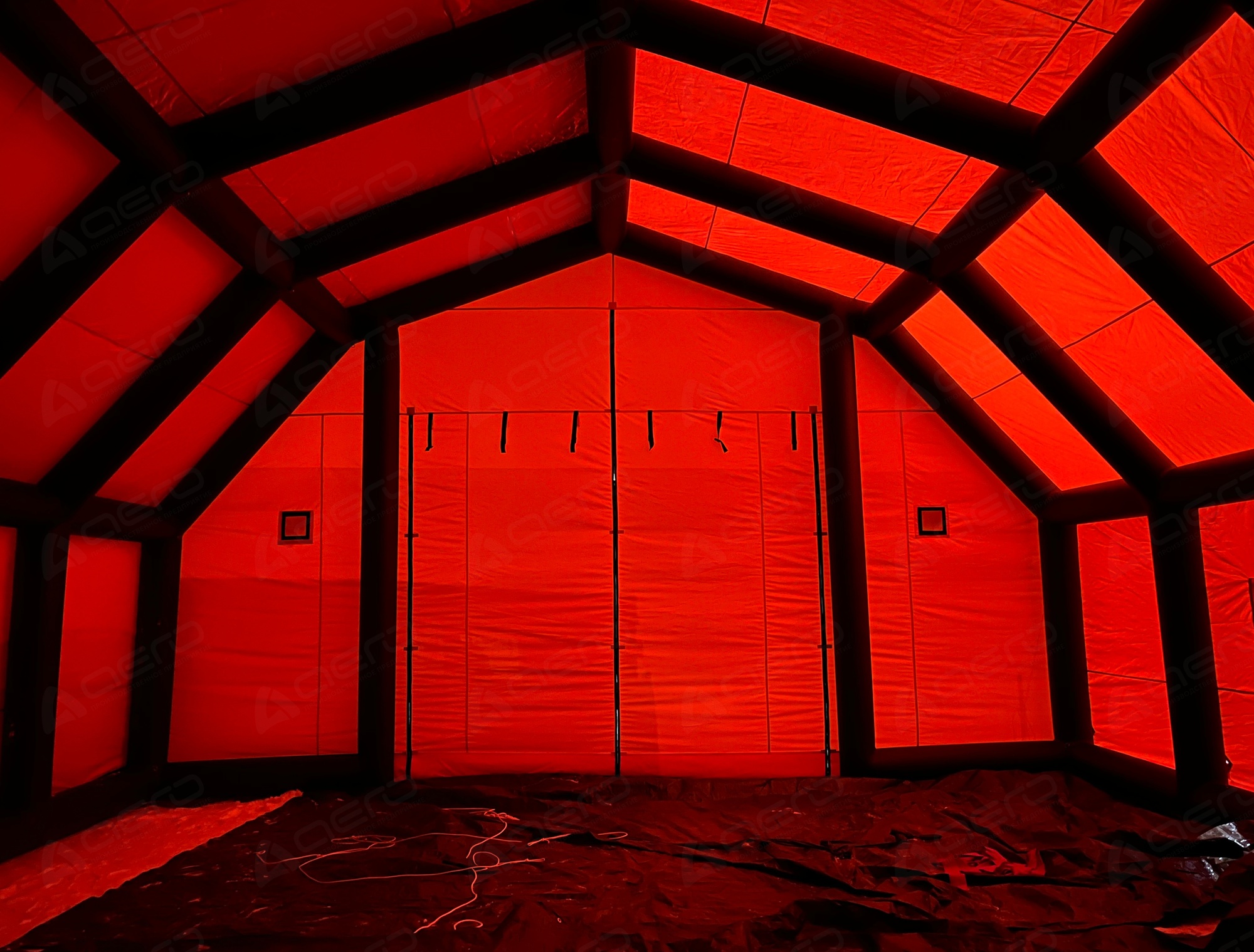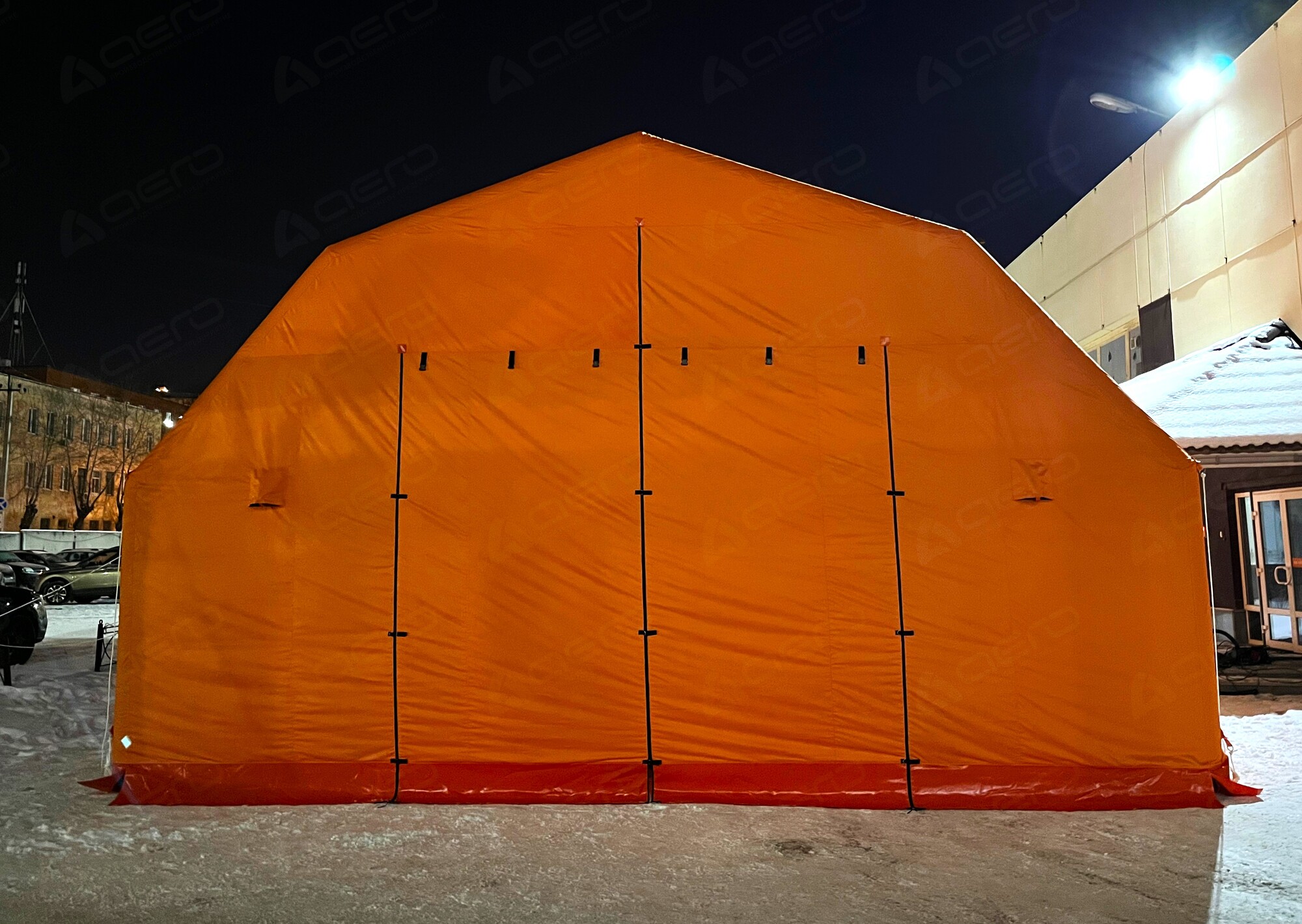 Мобильное надувное укрытие предназначено для проведения ремонта и обслуживания специализированной техники, а также для организации складских помещений в полевых условиях и на удалённых объектах. Пневмоукрытие, выполненное из прочных материалов, быстро устанавливается с помощью электрического насоса (220В), образуя защищённое помещение, которое защищает от неблагоприятных погодных условий. В течение 72 часов падение давления внутри надувной конструкции не превышает 10% при отсутствии подкачки и стабильности погодных условий.